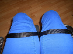 Meine Hundehalsbänder, um die Oberschenkel gebunden, ein Super Hilfsmittel zum Positionieren meiner Beine. Auch zum Anheben, oder nachts im Bett zum Umlagern, oder morgens für die Dehnübungen. Meine Physiotherapeuten nutzen Sie auch zum seitlichen Dehnen meiner Beine.