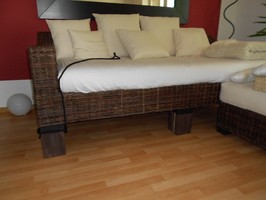 Mein erhöhtes Sofa, solange man noch stehen kann, fällt es einem leichter hochzukommen. Und später wenn nichts mehr mit den Beinen geht, kann man mit dem Rutschbrett gut umsetzen. Am leichtesten ist es, wenn man von oben nach unten rutschen kann. Bei dem Sofa benutze ich immer meinen Hub, um die richtige Höhe zum Umsetzten zu erreichen. Das Sofa habe ich mit einem Satinbettlaken überzogen, damit kann ich mich besser darauf bewegen kann, da die Laken rutschiger sind.
