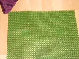 Eine Kunstrasenmatte auf die Fußstützen unter die Füße fordert die Durchblutung der Füße. Und kostet lächerliche 3,99€.